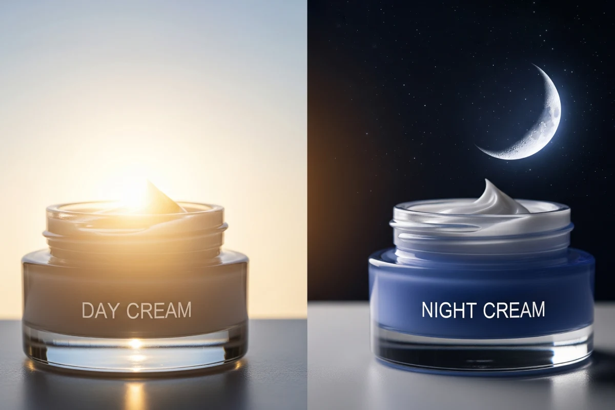 تفاوت کرمهای پوستی روز و شب در مواردی مانند ترکیبات، بافت، عملکرد و زمان استفاده است. برای نمونه در ترکیبات کرم روز جهت حفاظت از پوست در برابر آسیبهای محیطی و اشعههای مضر آفتاب شاهد فیلترهای UV، آنتی اکسیدانها و مرطوب کنندهها هستیم. سایر ترکیبات یک کرم روز میتواند شامل موارد زیر باشد: